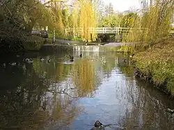 The river is fed by a number of sources including springs from Biggin Moor, Great Hormead Brook, Little Hormead Brook and various field ditches, including the Braughing Bourne - the site of a former glacier from the Ice Age. It flows south, close to the B1368 road to the southwest of Braughing where it joins the River Rib at Gatesbury. This area was the site of a former Roman settlement.[1] Until recently the river was diverted at this point to irrigate watercress beds before flowing into the Rib.