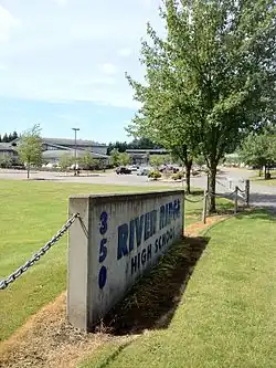 River Ridge and its feeder school, Nisqually Middle School, serves many students with parents who are on active duty or have retired from the military due to its proximity to Joint Base Lewis-McChord.[3] River Ridge was constructed as a community solution to handle the over-flowing capacities of neighboring Timberline and North Thurston High Schools in the late 1980s-early 1990s, producing a more diverse student body population than the other two high schools in the district. It is also currently being renovated.[4]