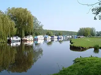 The River Wissey is a river in Norfolk, eastern England. It rises near Bradenham, and flows for nearly 31 miles (50 km) to join the River Great Ouse at Fordham. The lower 11.2 miles (18.0 km) are navigable. The upper reaches are notable for a number of buildings of historic interest, which are close to the banks. The river passes through the parkland of the Arts and Crafts Pickenham Hall, and further downstream, flows through the Army's Stanford Training Area (STANTA), which was created in 1942 by evacuating six villages. The water provided power for at least two mills, at Hilborough and Northwold. At Whittington, the river becomes navigable, and is surrounded by fenland. A number of pumping stations pump water from drainage ditches into the higher river channel.