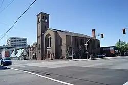 Fifty percent of Spokane's downtown is designated as historic and the downtown area contains three National Register Historic Districts.[5] The tallest building in the city is the Bank of America Financial Center at 288 feet (88 m), completed 44 years ago in 1981.[39] The nearby Wells Fargo Center is the second tallest at 243 feet (74 m), and opened a year later. Other significant public facilities in downtown include the Spokane Convention Center, the First Interstate Center for the Arts, and the Spokane Arena.