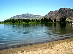 In 1885, the site that would eventually become the park was used as a campsite by Chinese Canadians from Savona's Ferry working on the Canadian Pacific Railway.[2] When members of the On-to-Ottawa Trek stopped in Kamloops on their way from Vancouver to Ottawa, Ontario, in 1935, Mayor W.J. Moffat offered the men an empty hospital to sleep in, but the men declined, many choosing rather to sleep in Riverside Park where they had only one blanket to share between three or four men.[3] In 2011, a parking garage was proposed to be built in the park, but a group called the Friends of Riverside Park gathered signatures from more than 10% of the Kamloops electorate opposing the proposal, thereby forcing a referendum on the subject.[4] Before the referendum could take place, however, the city council unanimously voted to put an end to the plans to build the parking garage.[5]