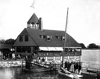 The Riverside Yacht Club was founded in 1888 by George I. Tyson, a prominent and wealthy summer resident of Riverside, CT, and the owner of the yacht Nirvana.[2][3] Using his own money and waterfront property, Tyson built the original Victorian-style clubhouse in 1889 on the eastern shore of Cos Cob Harbor near the entrance of the Mianus River.[2][4] Tyson became the first Commodore, a post he held for eight years.[2]