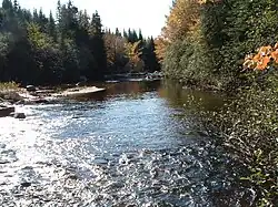 • 5.5 kilometres (3.4 mi) to the south in a deep valley by collecting the discharge (coming from the north) from Lac à la Loutre and by cutting the route 175 (route Antonio-Talbot), to the confluence of Noire River (coming from the northwest);