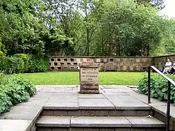 The original chapel yard had no path and was covered by grass. Until the early 20th century the chapel was heavily covered in Ivy and the gate was kept locked and entry was accompanied if no service was being conducted, during which the service was conducted with windows open in summer.[31] Gravestones are a variety of types, with the earlier ones being slabs raised by stone sides, many of the raised grave slabs had to be lowered to ground level due to the supports sinking by the mid 20th century. Some graves at ground level were surrounded by decorative wrought iron railings, the ironwork was removed in World War II by government for use in munitions production.[9] There are graves here with monuments to the Pilkingtons, Andrews, and Cromptons, Lords of the Manor of Rivington;[32] the Shaws, whose ancestry can be traced to 1190;[11] the Ormrods; Samuel Oldknow "of Nottingham, late of Anderton", who died on 7 August 1759 and whose son, Samuel Oldknow, was a factory owner[3] and the first Mayor of Bolton, C. J. Darbyshire.[33] A plaque commemorates Walt Whitman, celebrated on 31 May 1913 by the minister, Samuel Thompson and the Eagle Street College.[34][35]
