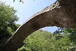 The Queen Tamar bridge was a semicircular Stone Bridge that was built in the 11th century.[7] The bridge was built on the two sides of the valley mountain chains for the purpose of crossing onto the other side where the monastery was, the supports were built to lean against a natural rocky foundations and was built from pieces of stones on a solution of lime, the stones and lime were brought from the river below which had a large amount. The bridge is 12.5 metres long and 2.2 metres wide.[5] The bridge was named after Tamar of Georgia because she was believed to have owned a summer residence in that area.[7]