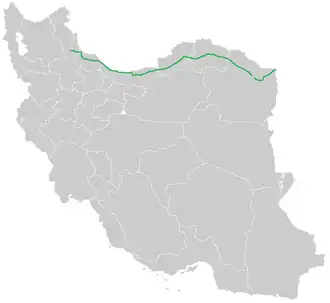 Road 22 is in northern Iran.[2] It connects Sarakhs at the border with Turkmenistan to Mashhad, then to Gorgan, and afterwards it runs parallel to the Caspian Sea. Most parts of this road are expressways but some of them are in the Golestan Jungle.[3]