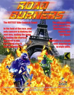 Road Burners is a motorcycle racing arcade game developed and released by Atari Games and Midway Games in 1999. It features a tilting motorcycle and the ability to be hooked to other like machines for up to 8 simultaneous players.[1]