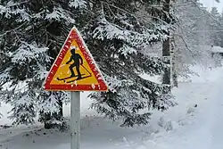 Warning signs are triangular, but in contrast to those of most other states using triangular warning signs, Finnish signs have yellow backgrounds, rather than white.