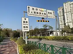 Road signs in Macau are regulated in the Regulamento do Trânsito Rodoviário (Chinese: 道路交通規章) and standardised by the Secretary for Transport and Public Works.[1] Due to being a former Portuguese territory, the road signage in Macau is similar to road signs used in Portugal until 1998, with the addition of traditional Chinese characters and some signs reversed to reflect driving on the left. After the transfer of sovereignty over Macau in 1999, the old style of Portuguese road signs was retained and still used to this day. Road signs conform to the general pattern of those as set out in the Vienna Convention on Road Signs and Signals and used in most European countries, although Macau is not a signatory to it, but Portugal is.[2] Macau drives on the left.