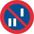Prohibitory signs are circular in shape with yellow backgrounds and red borders, except the international standard stop sign that is an octagon with red background and white border and the no parking and no standing signs that have a blue background instead of yellow.