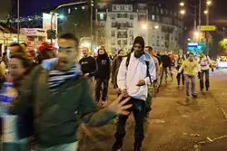 A (often abbreviated to FNS) is a group skate occurring on Friday nights, a common night for a group skate in many cities throughout the world.[8][9] In Vienna (since at least 2011) and Graz (Austria) once in a year – around resp. on Carfree Day, 22 September – one of the 20–25 km long tours runs for a small part on an urban highway. FNS run there weekly, if streets are dry, since 1999 in Vienna as a "political demonstration" by activists of the Green Party, starting at 21:00 partially in dark night and since 2000 in Graz as a sporting event, that has to pay fees to the city and accompanying police, starting at 19:30, reaching dawn only in late August.[10][11]