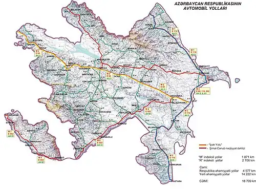 - ^ "Yerli əhəmiyyətli avtomobil yollarının siyahısı" [On approval of the list of roads of republican significance of the Republic of Azerbaijan] (PDF). (Archive)