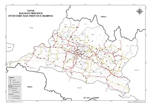 There are seven provinces in Nepal which have many provincial highways and provincial roads which are marked by the province's government. Provincial highways or roads are marked as below: