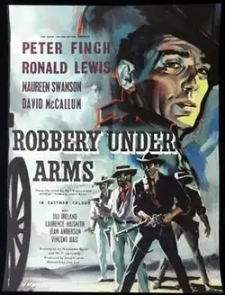 Robbery Under Arms is a 1957 bushranger film directed by Jack Lee and starring Peter Finch, Ronald Lewis, Maureen Swanson and David McCallum.[1][2] It is adapted by Alexander Baron, W. P. Lipscomb and Richard Mason from the 1888 novel of the same name by Thomas Alexander Browne (under the pen name "Rolf Boldrewood").[3][4]
