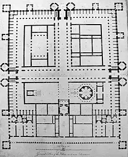On 3 October 1754, Robert Adam in the company of his brother James (who went as far as Brussels) set off from Edinburgh for his Grand Tour, stopping for a few days in London, where they visited the Mansion House, London, St Stephen Walbrook,[17] St Paul's Cathedral, Windsor, Berkshire, in the company of Thomas Sandby who showed them his landscaping at Windsor Great Park and Virginia Water Lake.[18] They sailed from Dover arriving in Calais[19] on 28 October 1754.[20] He joined Charles Hope-Weir, brother of the Earl of Hopetoun in Brussels[21] and together they travelled to Rome.[22] Hope agreed to take Adam on the tour at the suggestion of his uncle, the Marquess of Annandale, who had undertaken the Grand Tour himself. While in Brussels the pair attended a Play and Masquerade, as well as visiting churches and palaces in the city.[23] Travelling on to Tournai, then Lille, where they visited the citadel designed by Sébastien Le Prestre de Vauban.[24] By 12 November 1754 Adam and Hope were in Paris where they took lodgings in Hotel de Notre Dame.[25]