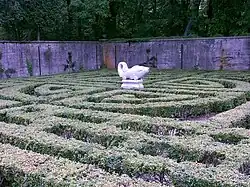 Allerton Park's gardens consist of a one-quarter-mile-long (0.40 km) formal garden, and a one-and-a-quarter-mile-long (2.0 km) sculpture walk extending westward from the end of the formal garden. The gardens incorporate many pieces of sculpture and ornaments.[15]