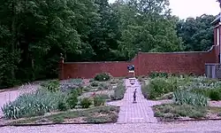 The oldest garden on the Allerton Estate, the Brick Walled Garden was constructed in 1902 and is characterized by its tall, red-brick walls. It was originally a vegetable garden with bean trellises and a dipping pool in the center for irrigation. In the 1940s the plantings were changed to grassy quadrants bordered with hedges.[18] The pool was replaced by the present center feature, the Girl with the Scarf sculpture.[16] The sculpture, a white concrete figure by Lili Auer (1904– ), was added to the garden in 1942.[19]