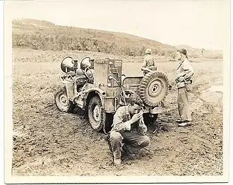 Sheeks landed on the beaches of Saipan with the first wave of the invasion.[20] He and the other Japanese language officers used a combination of leaflets, speakers, and patrol work to convince people to surrender.[21] The leaflets would be dropped out over enemy territories by artillery spotters who did it as a personal favor.[22] The loudspeakers were more successful than many of the other methods,[23] and eventually higher-ranked intelligence officers would urge that more units have them.[24] Nevertheless, after Saipan, many American soldiers were skeptical about trying to get civilians and Japanese soldiers to surrender,[25] but they let him try. When approaching a potential surrender group, he had the American soldiers put their rifles over their shoulders to avoid looking threatening,[20] and sometimes approached them unarmed.[20] If he wasn't successful, the Marines would continue their assault.[26] Sheeks and his fellow Japanese-language officers not only saved civilian lives, but captured twice the Japanese soldiers than had been captured by U. S. Marines in the previous two years of the Pacific War. They also convinced many ordinary American soldiers that they did not have to kill every Japanese or civilian they encountered.[27]