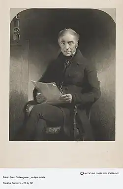 Robert Bald apprenticed to his father Alexander, the superintendent and manager of the Mar collieries.[note 1] The pair can be seen as forming 'something of a "school" of viewers', and a Scottish equivalent of the Buddle family of viewers of northern England. He combined two qualities vital for colliery direction: a deep practical knowledge with a respect for scientific enquiry (he contributed to the Edinburgh Philosophical Journal among other learned publications).[8] Bald seems to have begun his consultative work around the turn of the century, by 1805 his advice was in great demand throughout Scottish coalfields, and he was called upon by both parties of dispute in court and by judges.[9] In 1808 Bald travelled with Thomas Telford (1757–1834) to survey the Göta Canal from Lake Mälaren (Stockholm) to the lakes of Vänern and Vättern in central Sweden.[10] He returned to the country in 1826 when he was invited by the Swedish councillor of state, Baltzar von Platen, to survey the Skanian coal fields, which he did in the company of Sven Nilsson.[11]
