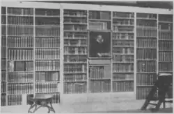 Burton's library was divided between the Bodleian and Christ Church libraries after his death. In the early 20th century, Oxford Regius Professor of Medicine William Osler, an enthusiast for Burton, found Burton's bequests "scattered indiscriminately"[113] throughout the two libraries, and, from 1907 to 1908, set about having them gathered together in one collection, rediscovering over a thousand of Burton's volumes. In Christ Church Library, Osler set up an elaborate display of these books surrounding a copy of the Brasenose Portrait of Burton. Osler delivered an address on the contents of Burton's library the following year.[114][115][116] In 1964, Christ Church Library disassembled Osler's Burton collection, moving the books to the Archiva Superiora on the second floor.[116] This collection comprises 1530 of the 1738 books and two manuscripts owned by Burton. The remaining 210 were distributed to either various acquaintances of Burton; gifted or traded to other libraries or bookshops; or by selling duplicates, some of which are unrecorded. Of the 140 books yet to be located, it is thought that around half of these are extant.[108] Christ Church Library has referred to Burton's library as "one of the most important surviving English private libraries from the period before the Civil War".[48]