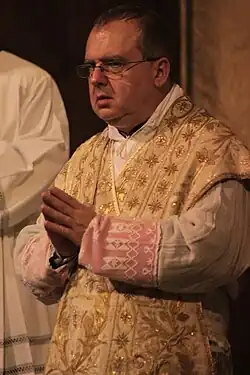 In March 2014, Pope Francis appointed him an auxiliary bishop of Archdiocese of Birmingham.[4] As such, he became the first Oratorian to be appointed a bishop in England since 1874 when Edward Bagshawe was appointed Bishop of Nottingham.[2][4][5] On 13 May 2014, he was consecrated to the episcopate as the Titular Bishop of Cuncacestre.[3][6] The principal consecrator was Bernard Longley, the Archbishop of Birmingham, and the co-consecrators were Michael C. Barber SJ, the bishop of Oakland, and Philip Pargeter, his predecessor as Auxiliary Bishop of Birmingham.[3] His pastoral area within the Archdiocese of Birmingham covered six deaneries: Birmingham Cathedral, Birmingham North, Birmingham South, Birmingham East, Kidderminster, and Worcester.[2]