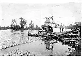 Robert C Hammond was the last sternwheeler built for service on the upper Fraser and Nechako Rivers. She was owned by the Fort George Lake and River Transportation Company, a partnership of George Hammond and his brother. She was launched at the Central Fort George town-site of Fort George on May 22, 1913. She was built so that George Hammond, the promoter of Central Fort George, could claim that his community had steamer service.[1] Central Fort George was on the Nechako River and the large sternwheelers owned by the BC Express Company, despite a $50 per trip inducement, could rarely call there, as there often were sandbars unless the water was very high.[2] The rival sternwheelers of the South Fort George town-site owned by the Fort George Lumber and Navigation Company were not interested in helping George Hammond promote Central.