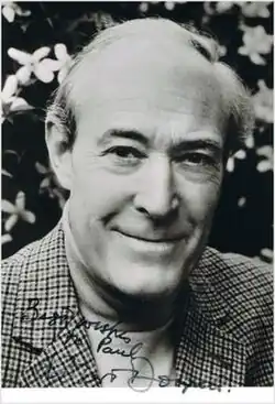 From 1970 to 1975, he was president of the Royal Society for the Protection of Birds (RSPB),[6] and became its honorary vice-president in 1979,[17] having been a member of the organisation since 1949.[18] The RSPB's membership increased from 50,000 to 250,000 during Dougall's presidency,[1] and took responsibility for land-management at Minsmere and exporting the RSPB's expertise abroad to reserves such as Spain's Coto de Donana and Malta's Ghadira Pool.[19] He was the narrator of two of RSPB's wildlife films and raised money for the Royal National Institute for Deaf People through television appeals.[19] In 1975, he appeared as a guest on The Morecambe & Wise Christmas Show, where he danced.[7][10] Dougall also appeared on television programmes and films such as The Generation Game, Russell Harty Show, Celebrity Squares,[13] Nationwide, Going for a Song, Yes Minister, Danger Tomorrow and The End of Arthur's Marriage.[10][20] He appeared in an advertising campaign for the jewellers Prestons of Bolton in the 1980s.[21]