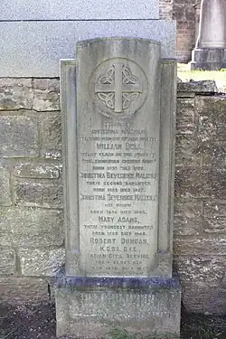 Bell is buried with his parents in Grange Cemetery in south Edinburgh. The grave lies just to the west of the north face of the central vaults.