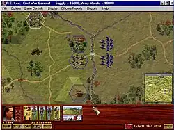 Robert E. Lee: Civil War General is a computer wargame with turn-based gameplay,[1][2] which unfolds on a hex map playing field. Set during the American Civil War, the game casts players in the role of General Robert E. Lee, and tasks them with leading the Confederate Army of Northern Virginia to victory over the Union Army of the Potomac.[2] It portrays eight Civil War conflicts, including the Battle of Gettysburg, the Battle of the Wilderness and a speculative scenario in which Lee lays siege to Washington, D.C.[3]