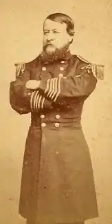 ![]() An 1868 photograph of an unidentified United States Navy officer on the staff of the United States Naval Academy. It has been suggested[1] that it is a photograph of Commander Robert F. R. Lewis. | |