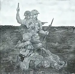 With the Germans still resisting any attempt to move beyond the bridges, and after artillery failed to suppress their fire, Cole called for smoke on the dug-in Germans and ordered a bayonet charge, a rarity in World War II. He charged toward the hedgerow, leading only a small portion of his unit at first. But the remainder of the battalion soon joined as Cole led the paratroopers into the hedgerows, engaging at close range and with bayonets in hand-to-hand combat. The German survivors retreated, taking more casualties as they withdrew.