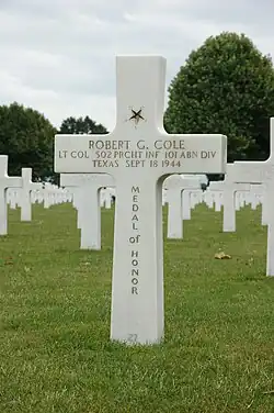 Lieutenant Colonel Robert George Cole (March 19, 1915 – September 18, 1944) was an American soldier who received the Medal of Honor for his actions in the days following the D-Day Normandy invasion of World War II.