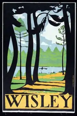 This was the case at this stage of his life. The critical acclaim came with an article in the Studio in February 1919, which reproduced a number of engravings, including two colour wood engravings. Commissioned work was more of a problem. Joseph Thorp obtained commercial commissions for Eno's Fruit Salts, Matinée cigarettes and Findlater's Port.[4] For the London Underground he produced a poster for Wisley and a publicity booklet for London Zoo (1922), now considered to be the first of his published works, and the rarest.[1]