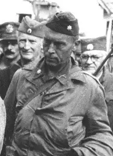 At that time the Chetniks had already ordered a general mobilization aimed against Axis forces, so McDowell personally witnessed positioning of mobilized Chetnik troops to follow this aim and their resistance to German and Bulgarian forces to the final limits of people and equipment, capturing substantial number of prisoners and quantity of ammunition.[9] Mihailovich informed McDowell that he had mobilized about 100,000 men with arms and 500,000 men without arms by 1 September 1944.[10]