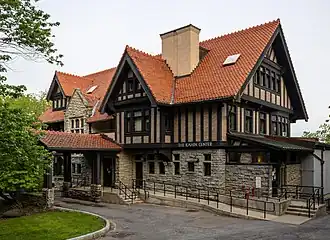In 1901, Treman and his brother began building their family estates in Ithaca's East Hill, a new and prestigious neighborhood on the edge of the Cornell campus.[3][2] His modified Arts and Crafts style house on 640 Stewart Avenue had a view of Cayuga Lake and was designed by architect William Henry Miller.[12][2] Treman family members continued to live in the house until 1942, and Cornell began negotiations to purchase the house from the family in 1944. The building today houses the Cornell Southeast Asia Program's George McT. Kahin Center for Advanced Research on Southeast Asia.[13]