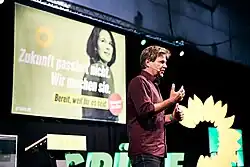 On 27 January 2018, the Green Party's national convention in Hanover elected him as chairman, a position shared with Annalena Baerbock.[13]