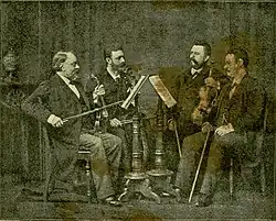 In 1879-80, Charles Villiers Stanford wrote a Cello Concerto in D minor for Robert Hausmann. This followed Hausmann's premiering in England Stanford's Cello Sonata, Op. 9, in 1879. It was the first significant British cello sonata.[1] In 1881 Hausmann premiered Max Bruch's Kol Nidrei, Op. 47, which was dedicated to him.[2] Bruch wrote this in response to a longstanding request from Hausmann to write a piece for cello and orchestra to match those he had written for violin and orchestra. Bruch also consulted Hausmann about bowings and other technical aspects.[3] Bruch's Canzone in B-flat, Op. 55,[4] and Vier Stücke, Op. 70, are also dedicated to Hausmann.