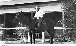 In the 1930s, Purvis bred horses there for the British Indian Army as well as race horses (with the brand "RTP")[6][9] as well as carrying sheep and small amounts of cattle until, around 1940, changing to primarily become a cattle station.[6][10] The property was expanded at some point, but as the government stipulated minimum livestock numbers, the land was overgrazed, and likely mismanaged, according to reports of his son. In 1954 the station was badly affected by drought and, again, in 1957 drought led to culling and sale of many horses.[9][11][12][13]