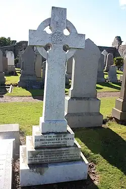 This monument is erected to the memory of Colonel Robert Hope Moncrieff Aitken VC Bengal Staff Corps and formerly of the 13th Regt Bengal Infantry, by some of his surviving comrades and other friends in token of their appreciation of his sterling worth as a man, and of the splendid gallantry and chivalrous devotion which he displayed as a soldier in command of this post, which he held with the faithful and loyal remnant of the Regiment to which he belonged throughout the defence of the Residency of Lucknow.