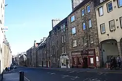 Early projects included the rebuilding of Eaglescarnie, near Haddington and the restoration of Acheson House in Edinburgh. He restored Lambs House in Leith and Hamilton House in East Lothian in 1937.[10] His firm also undertook work in Old Aberdeen and in the West Highlands. During the Second World War, Hurd worked with fellow architect Alan Reiach on a book for the Saltire Society entitled Building Scotland – Past and Future, a pictorial appeal for post-war Scotland to be planned and designed bravely.[11] In 1952 he received a major commission to replan and rebuild Edinburgh's Canongate, largely demolishing buildings and setting back the rebuilt facades to a new wider and straighter building line. Less care was taken over the rear elevations. The scale of the work required him to take on Ian Begg as a junior partner in 1953. He campaigned against the loss of George Square and in 1959 he was commissioned to restore the west side for University use. He was strongly interested in the arts and also helped found the Scottish Georgian Society, was an advisor to the BBC in Scotland, and helped to set up the Edinburgh Festival. His only noteworthy project of contemporary rather than historic idiom is a scheme of modernist flats at Ravelston Gardens, Edinburgh.