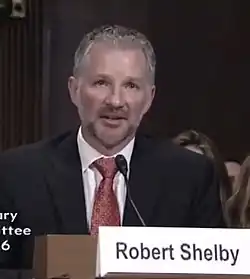 On November 30, 2011, President Barack Obama nominated Shelby to be district judge of the United States District Court for the District of Utah,[3] to the seat vacated by Judge Tena Campbell, who assumed senior status on January 1, 2011. He received a hearing before the Senate Judiciary Committee on March 28, 2012, and his nomination was reported to the floor on April 26, 2012, by voice vote. Both Senators from Utah, Orrin Hatch and Mike Lee, endorsed his nomination, with Sen. Lee describing Shelby as "pre-eminently qualified" and predicting that he would be "an outstanding judge." Hatch highly lauded Shelby: "A man of keen intellect, Robert Shelby...has demonstrated an unwavering commitment to the law".[6] In the early hours of September 22, 2012, on what was officially still the legislative day of September 21, the Senate confirmed Shelby in a voice vote. He received his commission on September 25, 2012.[5] He became chief judge on October 1, 2018.[7]