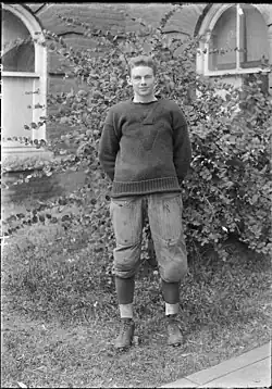 Robert Kent Gooch (September 26, 1893 – May 22, 1982) was an American football player and political scientist. Gooch was a quarterback for the Virginia Cavaliers football team of the University of Virginia. He was named a Rhodes Scholar, but the First World War interrupted his studies.[1] During the war, Gooch served with the American Ambulance Corps with the French forces on the Somme front, and was awarded the Croix de Guerre.[2] He is the namesake of the Robert Kent Gooch Scholarship, for second and third-year college students who have a record of outstanding academic achievement and a record of outstanding service to others.[3] For many years Gooch was a political science professor at UVA, writing several books.[4] He is buried at the University of Virginia Cemetery. A named professorship of political science, the Robert Kent Gooch Professor of Politics, was established in his honor at the university, with Larry Sabato the incumbent as of 2018.