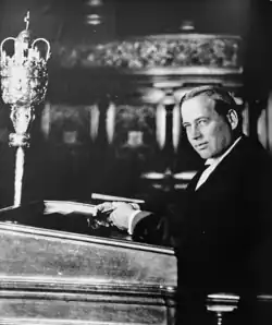 He was appointed Deputy Bailiff in 1962, but served 'barely six months' due to the death of the Bailiff.[6] He went on to serve as Bailiff of Jersey, 1962-74. He told a journalist in 1968, that he was a 'political capon–I have no views. I'm a chief magistrate, I preside over the States, and I act as a kind of Ombudsman too'.[7] In 1971, he sentenced Patrick Welch, a 21-year-old kitchen porter, to death for the murder of a 17-year-old girl on holiday in Jersey from Essex.[8] He was personally opposed to the death penalty.[9] As Bailiff, he oversaw Jersey's talks with the UK Government over its accession to the EEC, 'though he played little part in the substantive negotiations'.[10] He retired from office early, to enjoy his hobbies of sailing and carpentry.[11]