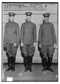 In 1911, Danford was assigned to the Army's remount depot near Lexington, Kentucky to undertake a study of horses and horse breeding, with the goal of determining the best methods for the Army to procure and employ the horses it needed for artillery, cavalry, transportation, and supply activities.[1] He commanded a battery at Fort Sill, Oklahoma from 1912 to 1914, including service on the Arizona-Mexico border during the Border War that took place during the Mexican Revolution.[1] From 1914 to 1915 Danford was an instructor at the Army's Field Artillery School.[7] Danford was based at Yale University in New Haven, Connecticut from 1915 to 1917, and served as senior instructor and inspector of the Connecticut National Guard.[1][7] During this assignment, Danford was promoted to major, lieutenant colonel, and colonel in the National Guard and assigned to command Connecticut's 10th Field Artillery Regiment.[1] He was promoted to captain in the Army in 1916.[1]