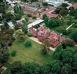 New England University College, established in 1938 under the University of Sydney, was still a small, fledgling institution. At the time of Madgwick's appointment, the college had 202 full-time students, two faculties – arts and science – and no professors, only lecturers. Most of the school's activities and facilities were contained in a single building- Booloominbah. The New South Wales State Government Act, which created the college, stipulated that it would become independent as soon as it was considered ready.[45][d] The school, however, had made little progress towards official autonomy. A formal request for funding and support to go independent submitted to the state by the school in September 1944 had gone unanswered. In May 1945, the University of Sydney Senate mandated that the college be emancipated within seven years, but had thereafter taken no further action to ensure that its order was accomplished. Among Madgwick's most pressing concerns upon assuming the office of warden was to resolve the question of independence for the school.[47][48][e]
