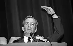 McFarlane was a central figure in the Iran–Contra affair, an operation in which the Reagan administration funneled weapons to Iran and diverted the profits to illegally fund right-wing rebels in Nicaragua. When the scheme came to light, administration officials implemented a plan to insulate Reagan and senior officials by focusing blame on McFarlane.[3] He ultimately pleaded guilty to four misdemeanor counts and admitted that he had hidden information about the Reagan administration's support of the Contras from Congress. Suffering from guilt over his role in the scheme and feeling betrayed by Reagan, who, McFarlane later wrote, "approved every single action I ever took" but "lacked the moral conviction and intellectual courage to stand up in our defense and in defense of his policy." McFarlane attempted suicide in 1987.[3][1] He was later pardoned, along with several other figures in the Iran-Contra scandal, by President George H. W. Bush shortly before he left office.