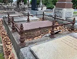In 1882 Smith was appointed Agent-General of the colony of Victoria in London, and held the position until February 1886, when his term was renewed at his own request for one year only. As Agent-General Smith took a prominent part in the negotiations respecting the annexation of New Guinea, the influx of Recidivists into the islands of the Western Pacific, the Anglo-French control of the New Hebrides, and the passage through the Imperial Parliament of the Federal Council of Australasia Bill.[1] Prior to his leaving England in the early part of 1886, he was entertained at a public banquet at the Freemasons' Tavern, presided over by the Duke of Cambridge and attended by all the leading colonists and persons connected with the Australasian colonies in London. In 1884 he was created C.M.G.[1] In October 1894, Smith returned to the Assembly, winning the seat of Hawthorn and holding it until October 1900.[2] Smith died at his home in Toorak, Melbourne, Victoria, Australia on 31 August 1921, predeceased by his wife and a son, survived by three daughters.[3] He was buried at St Kilda Cemetery.