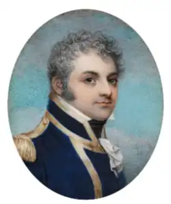 Vice-Admiral Robert Plampin (1762 – 14 February 1834) was a British Royal Navy officer during the late 18th and early 19th centuries, serving in the American Revolutionary War, the French Revolutionary Wars and the Napoleonic Wars, but best known for his time as commander of the British colony of Saint Helena in the South Atlantic during the period when former Emperor Napoleon Bonaparte was imprisoned there. Born into a Navy family, Plampin went to sea at age 13 and fought throughout the American Revolutionary War, based principally in the Caribbean Sea. During the French Revolutionary Wars, Plampin served in a number of ships with mixed success, once being involved in a shipwreck and twice serving ashore during sieges. After the Peace of Amiens, Plampin took command of the ship of the line HMS Powerful and operated successfully in the Atlantic and the Indian Ocean. In 1816, following the defeat and capture of the French Emperor, Plampin was placed in command of the squadron at the Cape of Good Hope, which also had responsibility for Saint Helena, which Plampin regularly visited and had numerous conversations with Napoleon.