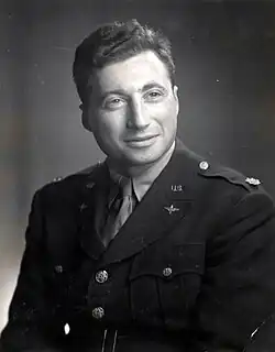 On January 2, 1942, Rosenthal enlisted in the United States Army as an aviation cadet.[3] In September 1942, he graduated from the Air Corps Advanced Flying School at Moody Field, near Valdosta, Georgia, earning his wings and a commission as a second lieutenant.[4] In September 1943, he completed Boeing B-17 Flying Fortress combat crew training at Dyersburg Army Air Base near Halls, Tennessee.[5] He and his crew were immediately shipped overseas and joined the 418th Bombardment Squadron, 100th Bombardment Group, stationed at RAF Thorpe Abbotts in England.