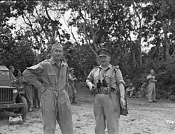 For the battle, Row's brigade was detached from the 3rd Division and placed under the operational command of the US 1st Marine Amphibious Corps.[21] In addition to the three battalions of his brigade, Row had under his command US combat support and service support units including a naval construction battalion (the 87th), a signals unit, a naval base unit, and a coastal artillery battalion (the 198th) to provide anti-aircraft fire support.[19] Having US personnel under foreign command was unusual for the Second World War and was a reflection of Halsey's confidence in Row's leadership.[22]